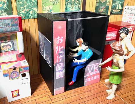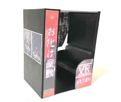 | 実機について | 2019年3月、サファリゲームズから登場したバーチャルリアリティ(VR)体験施設。 カーテンに覆われた横並びのベンチシートに座り、本格ホラー映像をVRで楽しむ。 筐体は非常にコンパクトであるが、シールプリント機コーナーへの設置を意識したためで、 男女カップルや女性同士の利用を想定している。 同時体験は2人が基本だが、最大3人まで入る事が出来る。 ヘッドマウントディスプレイはワイヤレス式で、VRが初めての人でも手軽に楽しめる。 体験者の荷物はシートの下の空洞部分に収める構造になっている。 第一弾コンテンツは、過去に車内で起きた通り魔事件に遭遇する『呪刻列車』と、 "メンドリ様"の呪いによって廃校に追いやられた学校が舞台の『呪刻教室』の2タイトル。 基本的に店舗側が上映する映像を切り替えるが、体験者が観たい映像を選択する事も可能。 プレイ時間は約10分程度となっている。 |