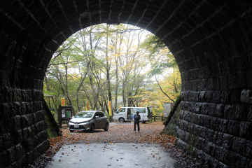 | トンネルの中から駐車場を見る | トンネルの右側から歩き始める | |||