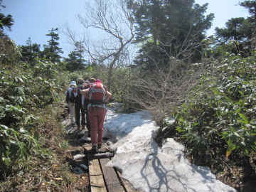 | 登山道には残雪がありました | 愛とクマ除けの鐘 | |