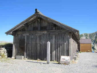 4日目 前から行きたいと思っていた所へ寄ってから帰ることにしました。 それは玉殿岩屋と日本最古の山小屋立山室堂で、現在の室堂山荘の横にあります。 まず玉殿岩屋へと下りました。洞窟は2つありました。 映画「剱岳・点の記」で見た所と思われ、今は可愛い石仏が並んでおりました。 無事な山旅を感謝して手を合わせました。 立山室堂の前で山の絵を描いている人がいましたが、小屋は無人で協力金の箱が置いてありました。 小屋はいくつかの部屋に分かれていましたが、柱の太くて丈夫そうなのにはさすがと思いました。 これなら深い雪にも耐えられそうです。古き良きものに出会えました。 そして室堂ターミナルから高原バスに乗って帰途に着きました。 |